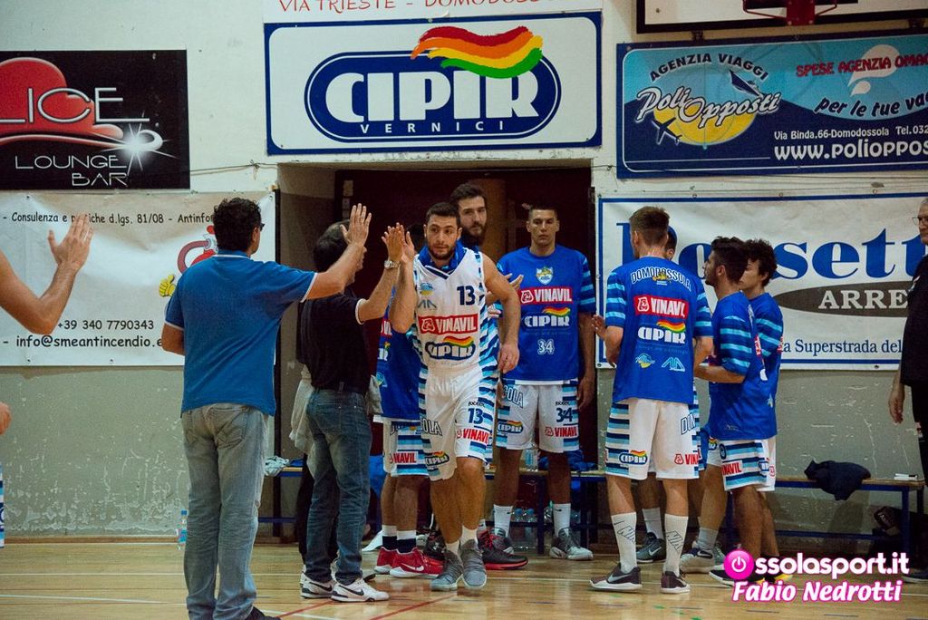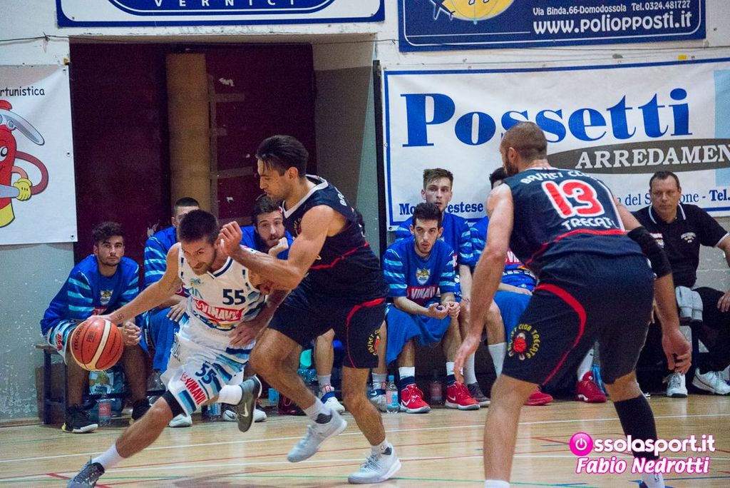 Fabbri parte con Zeneli, Antonietti, Kuvekalović, Rotundo e Tommei. Il primo quarto viene vinto dai padroni di casa col punteggio di 17-10, viziato da uno Zeneli decisivo sotto entrambi i canestri. A inizio secondo quarto Kuvekalović infila una doppia tripla (a fine partita ne avrà segnate quattro) e dà il via all'allungo: parziale di 8-0 a favore di Domodossola, rifinito anche da Tommei per il 36-21 di metà partita. Al ritorno dall'intervallo lungo la musica sembra essere rimasta la stessa e dopo quattro minuti la Vinavil-Cipir si porta a +20, ma nel resto del periodo Trecate riduce lo svantaggio, sfruttando anche qualche decisione arbitrale non apprezzata dai padroni di casa. Terzo quarto in archivio sul 53-41 ultimi dieci minuti che partono col tentativo di allungo della Vinavil-Cipir, contrastato da una squadra ospite che riesce sempre a rimanere in partita: a due minuti dalla sirena Trecate è a -7, ma una tripla di Fornara ristabilisce le distanze. Termina 74-63 per la squadra di coach Fabbri, che fa due su due e in classifica tiene il passo di Crocetta.