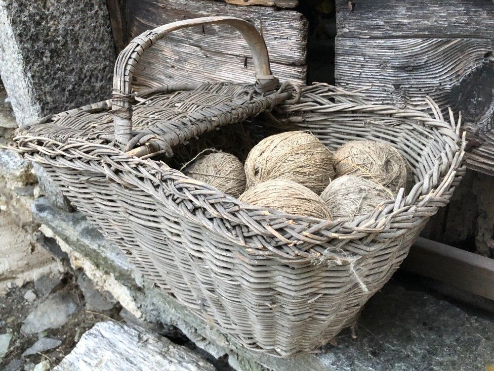 L’astrico era buio e polveroso. Il muro perimetrale, in parte crollato, aveva lasciato spazio ai giochi di vento e intemperie ed ogni cosa era coperta dal passaggio del tempo. Il cesto era lì, color del buio e della polvere, posato in un angolo . Silenzioso, dimesso, rassegnato. Rotto in più parti, rosicchiato dai topi, dal freddo, dall’umidità. Non ci ho pensato molto, l’ho afferrato e sono uscita. Il sole tiepido gli ha restituito un poco di dignità e con grande sorpresa ho scoperto al suo interno un carico prezioso di gomitoli di canapa. Fili sporchi, filati con precisione e sapienza. Il cesto aveva sicuramente vissuto nell’angolo di una cucina, accanto a un filarello. Un tempo era stato un bel cesto, intrecciato con abilità, utile a custodire storie di mani antiche di donne contadine. Trame perse e ritrovate che con pazienza cercherò di recuperare, col cesto accanto.