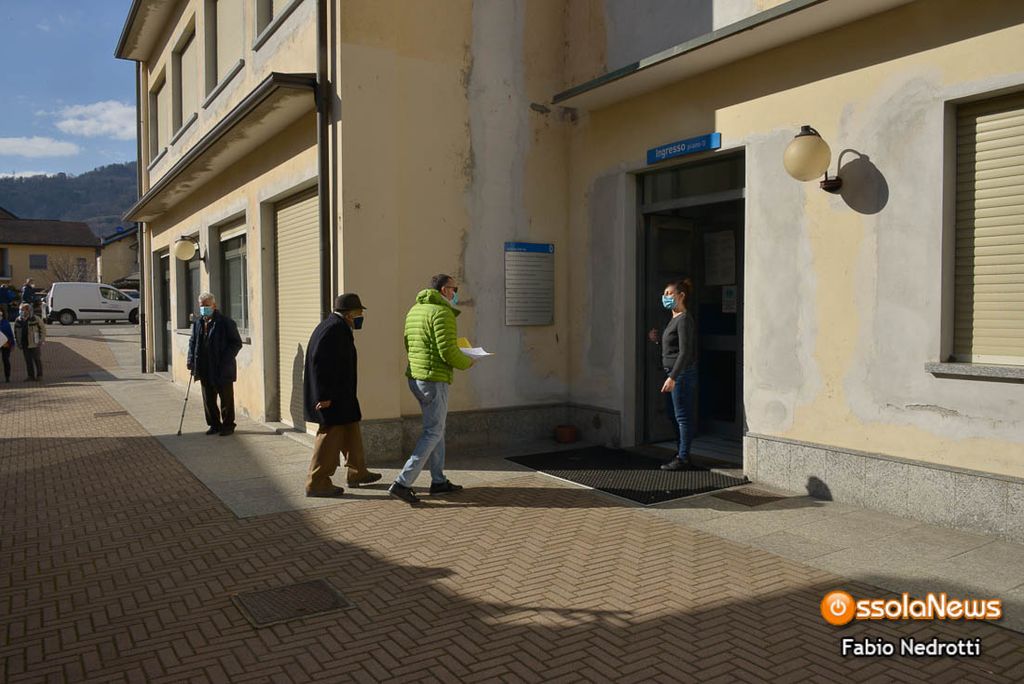 Si è aperta oggi la campagna vaccinale per gli ultra ottantenni. Alla sede Asl di Domodossola, presso gli ambulatori infermieristici, una ordinata fila di utenti ha atteso il proprio turno per accedere ai locali ed avere iniettata la propria dose.