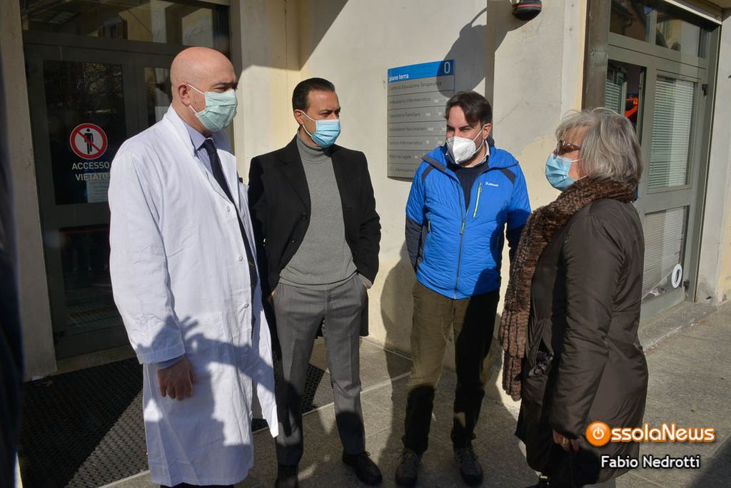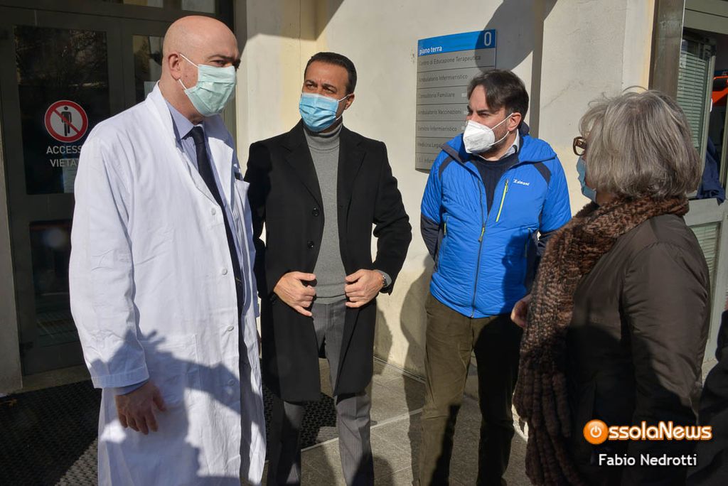 Alla prima giornata di vaccinazione dedicata alle persone non direttamente in percolo di esposizione, come ad esempio medici ed infermieri, hanno presenziato la direttrice generale dell'Asl Chiara Serpieri, il medico responsabile Edoardo Quaranta, il sindaco di Domodossola Lucio Pizzi e il capogruppo leghista in consiglio regionale Alberto Preioni.