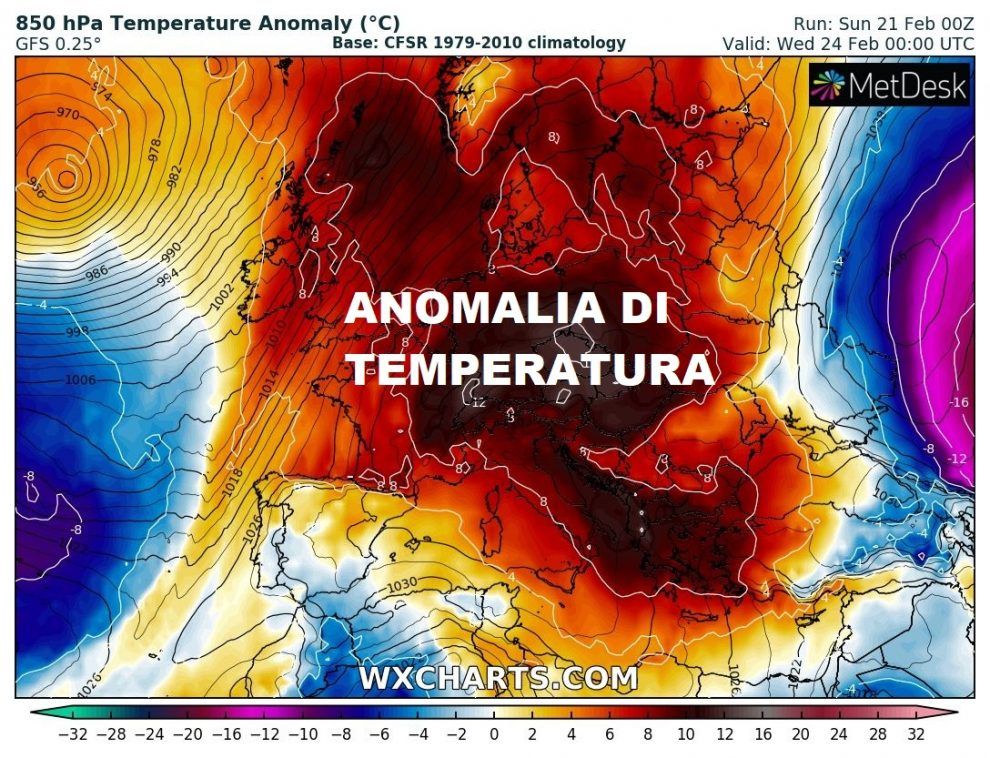 Archiviata una domenica con temperature assai gradevoli ci accingiamo a vivere un accenno di primavera con temperature verso i 20°C. e questa anomala temperatura si estende in Europa.