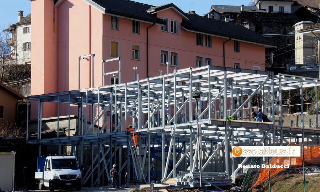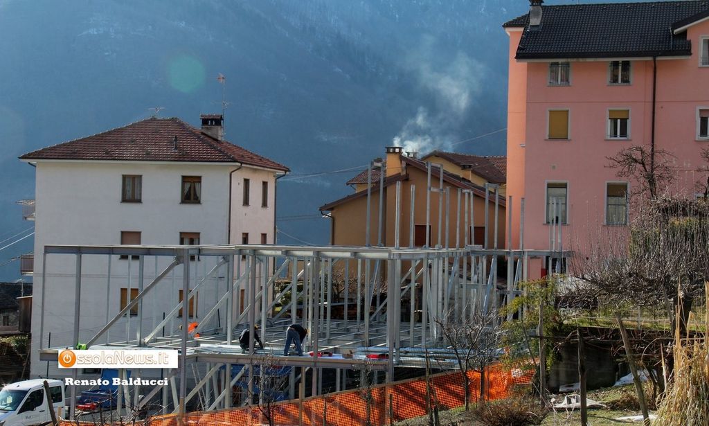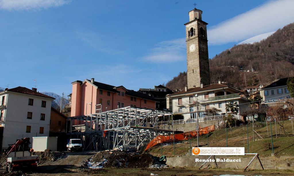 Da tempo si lavora alle spalle della struttura per anziani a due passi dalla piazza del paese. Dietro, verso il piccolo campo sportivo, sta sorgendo la nuova ala della casa di riposo: permetterà di potenziare la disponibilità di posti ma anche di trasformare la casa di riposo in un 'polo' dove concentrare i servizi attorno ai quali ruota il paese e anche la valle.