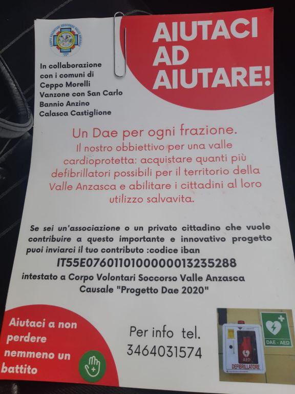 ‘’Abbiamo quindi ultimato l’installazione e ora sono aperte le iscrizioni ai corsi per l'abilitazione all'uso del DAE - aggiunge Tipaldi - . Tutti gli apparecchi sono segnalati con un cartello e custoditi all'interno di una teca allarmata. Gli apparecchi sono stati acquistati con i contributi erogati dal Comune, dalle associazioni del paese e dai cittadini in collaborazione con il Corpo Volontari Soccorso Valle Anzasca, che ha provveduto all'installazione e che ne seguirà la manutenzione’’