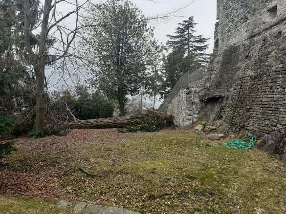 Il costo dell'intervento per togliere le piante sradicate e sistemare i percorsi alla fruizione è stato stimato dall'Ente di Gestione dei Sacri Monti intorno ai 13 mila euro. La mancata realizzazione degli interventi rendono l’area del balcone Belvedere, e la zona retrostante dove sono presenti i resti delle mura dell'antico castello e la croce in ferro illuminata che risulta visibile da tutta la città e da molti paesi vicini, inagibile. Ai primi di ottobre dello scorso anno il Calvario è stato colpito da un nubifragio e da venti con raffiche importanti che hanno favorito la caduta di alberi per sradicamento o per rottura dei tronchi e delle branche principali invadendo strade e sentieri.
