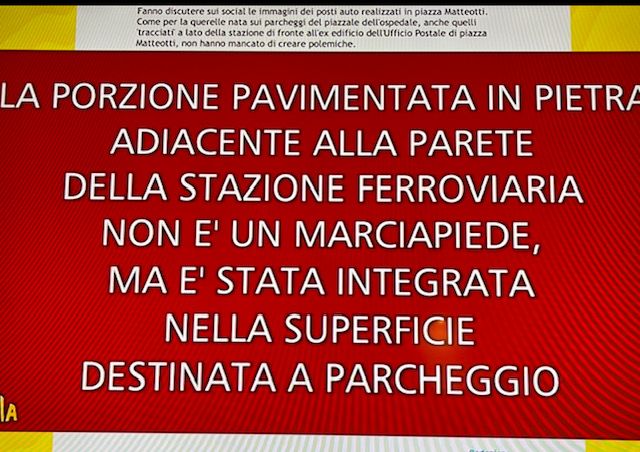Alla fine è andato in onda il tanto discusso servizio di Striscia la Notizia sui parcheggi di piazza Matteotti. Va detto che non è stato proprio un bel biglietto da visita per la città per un problema sul quale gli uffici comunali già nelle scorse settimane avevano dato spiegazioni, sia sul tracciamento a lisca di pesce, sia sulla soluzione definitiva delle nuove strisce blu a fine cantiere che libereranno nuovamente il marciapiedi. Come nello stile di molti servizi di Striscia la Notizia e di alcuni suoi inviati, il servizio ha cercato di mettere in risalto ed ingigantire un problema, a nostro parere, non meritevole di finire sulle reti nazionali, ma tant'è.