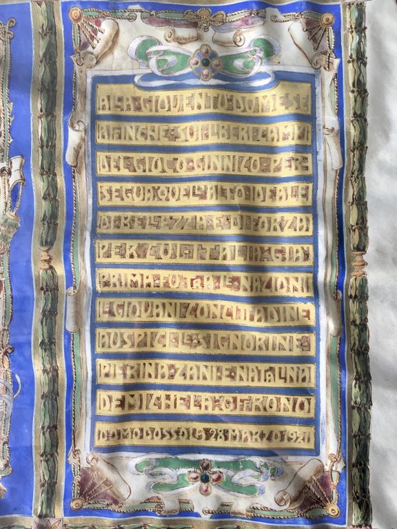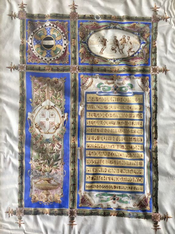 La pergamena, il cui centenario ricorrerà domenica prossima, è stata custodita nel tempo dall'associazione sportiva Juventus Domo che, con delibera del proprio consiglio direttivo presieduto dall'avv. Marisa Zariani, ha deciso ora di donarla alla città di Domodossola per una collocazione che possa darle risalto ed evidenza.