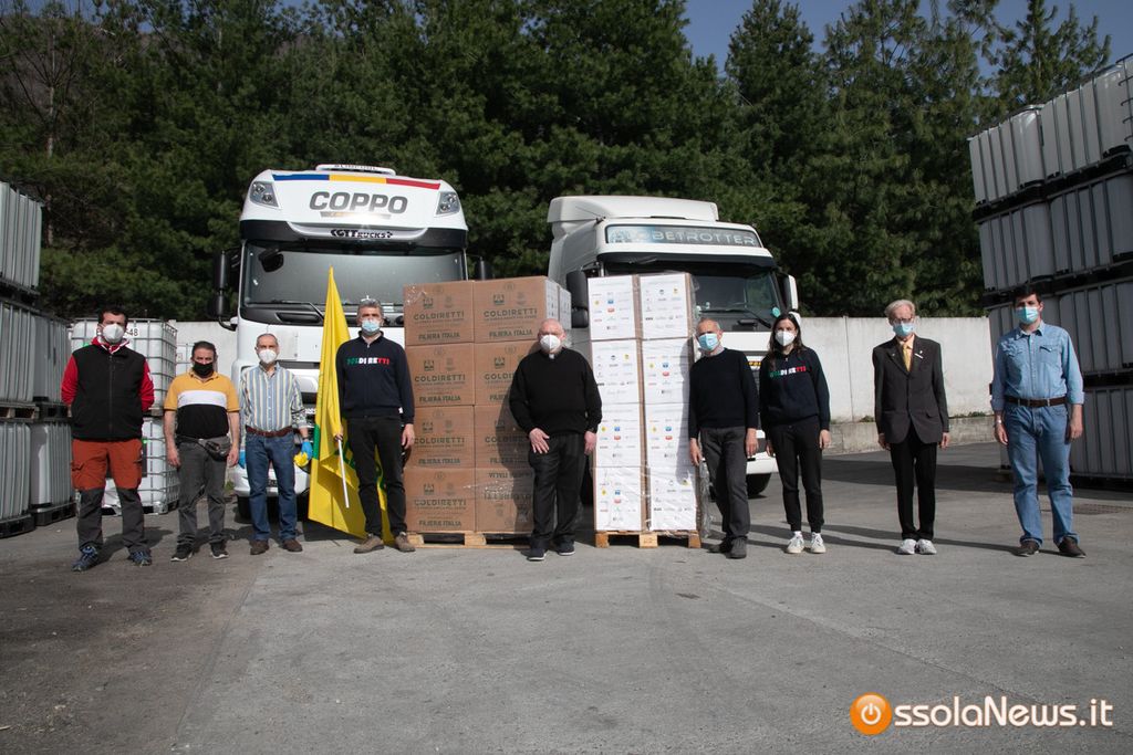 Oltre 1600 chili di cibo donati da Coldiretti alle parrocchie di Domo e Villa FOTO