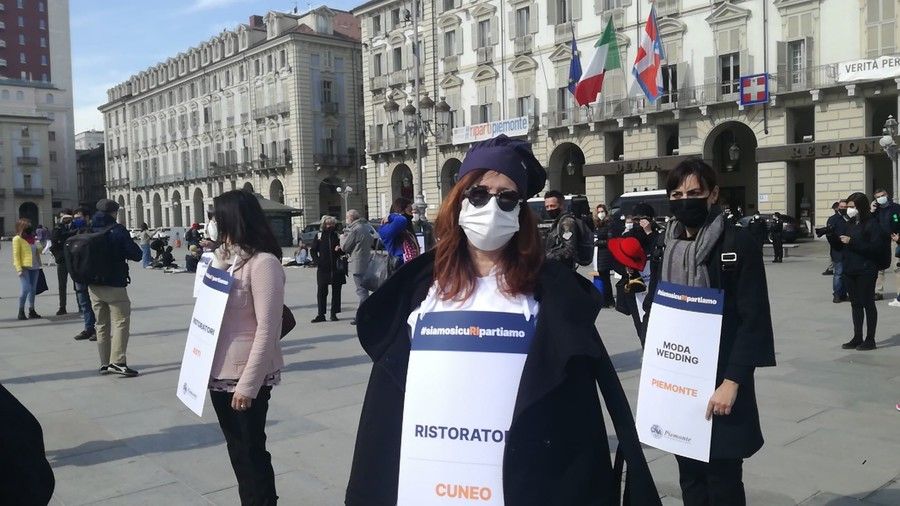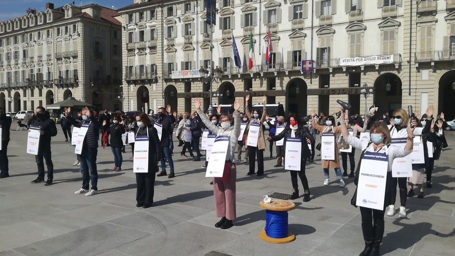 Ripartire in sicurezza. A poche ore da quello che potrebbe essere un ritorno alla zona arancione, il mondo dell'artigianato piemontese ha voluto fare risuonare la propria voce in piazza Castello, sotto le finestre della Regione. Il messaggio è uno solo: riaprire. In sicurezza. Ma riaprire. Perché il settore ormai è allo stremo.
