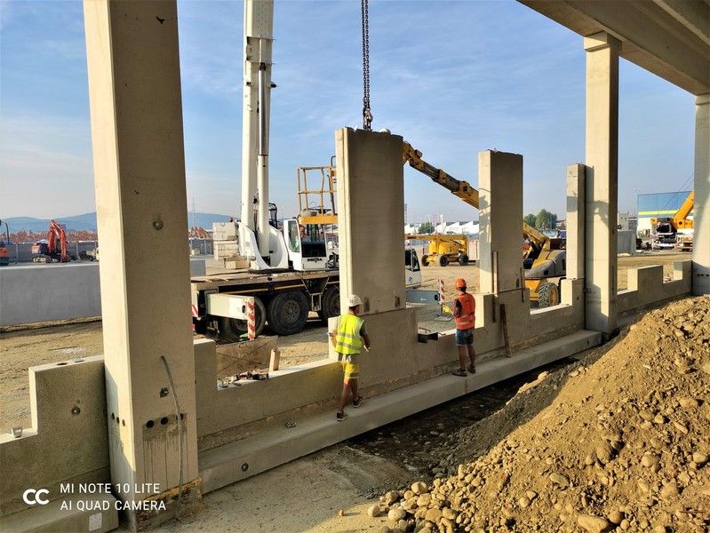 Nella sua continua evoluzione tecnico-progettuale, la Prefabbricati Guerrini ha introdotto la produzione di muri a spinta con annesse le necessarie forometrie destinate alle baie di carico, fornendo così un’ulteriore velocizzazione dei tempi di realizzazione dell’opera.