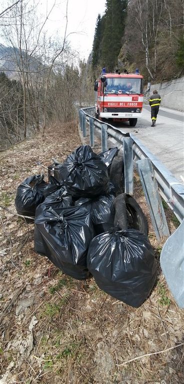 Una squadra dei Vigili del Fuoco con i volontari dei “Figli della Miniera” hanno ripulito e bonificato un tratto sotto la strada provinciale compreso fra Borca e Pestarena.