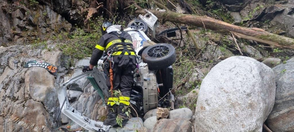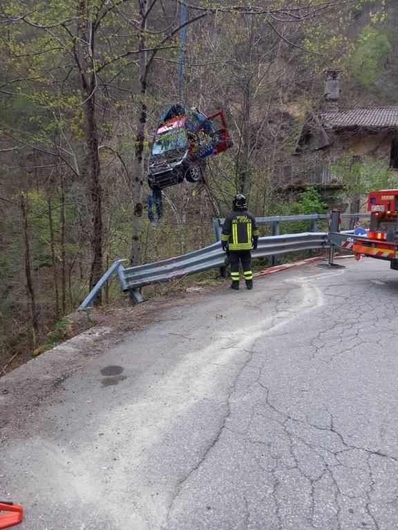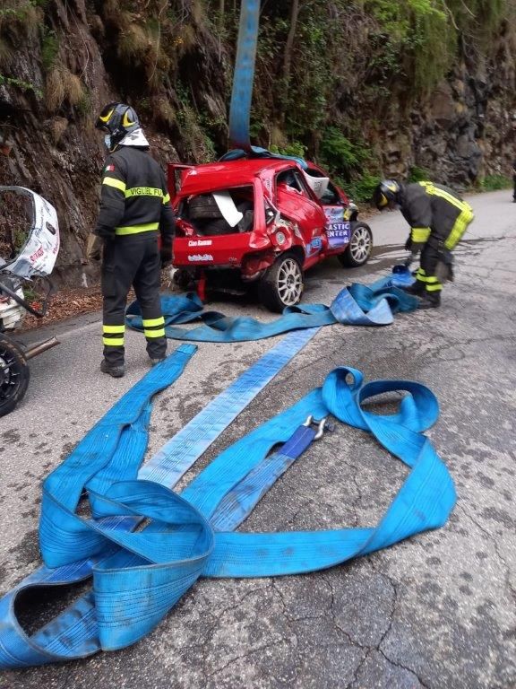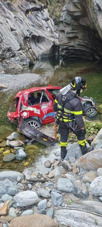 L’equipaggio, illeso, è subito sceso dal veicolo. Subito dopo un’altra autovettura in gara è uscita di strada nello stesso punto, tamponando il veicolo bloccato nel guard-rail. Entrambe le auto sono precipitate nell'alveo del torrente Cannobino, sottostante trenta metri la strada provinciale (SP 75). Illesi gli equipaggi. Intervenuta anche l’autogruu del Comando per il recupero.