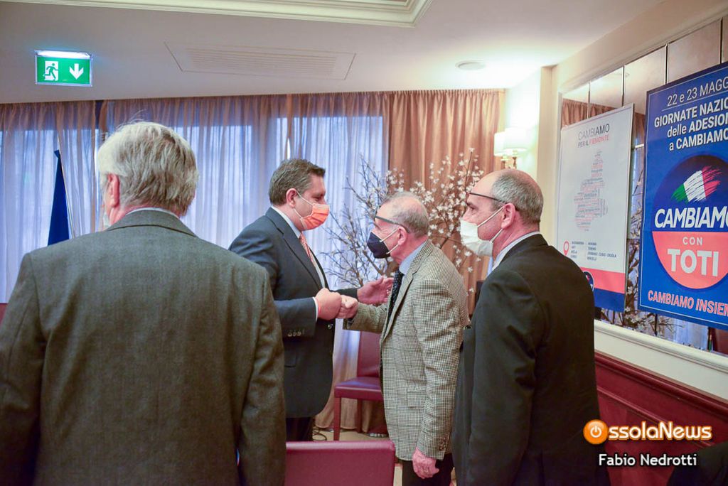 La visita di Toti 'dà un timbro' sempre più ufficiale alla formazione del suo partito anche nel Nord Piemonte, con la nascita del Comitato provinciale del VCO. Il seme lo avevano gettato in Ossola l’ex giudice di pace Carlo Crapanzano, il sindaco di Crodo Ermanno Savoia, e il consigliere comunale domese Fabio Basta, che due anni fa, proprio all’Hotel Corona, avevano annunciato la nascita di ‘’Cambiamo! Con Toti’’. Poi il partito ha fatto proseliti anche nel Cusio e nel Verbano e la prova è la presenza di molti amministratori e politici sulla terrazza dell’Hotel La Palma. Tra questi due ex socialisti come Fausto Sgro e Giandomenico Albertella, un ex di Forza Italia come Massimo Manzini, ma anche Paolo Nocilla, Pietro Morelli, Pietro Baldan l’ex senatore Silvano Boroli.