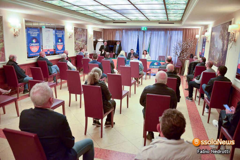 Un’oretta di confronto 'politico' sulla terrazza dell’Hotel La Palma di Stresa, un’oretta di dialogo con il mondo del lavoro in Ossola, all’Hotel Corona. Pomeriggio nel VCO per Giovanni Toti, fondatore e leader di ‘’Cambiamo! Con Toti’’ il partito nato sul distacco del presidente della Liguria da Forza Italia, alla quale non risparmia una frecciatina nel suo intervento a Stresa.