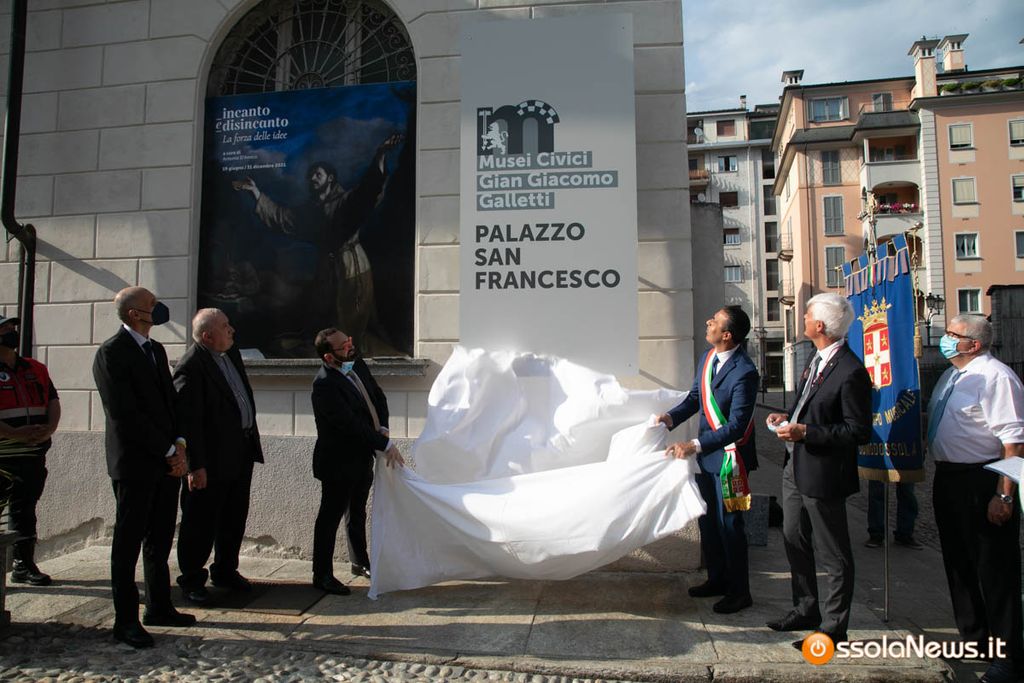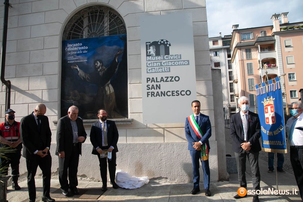 Le 18,18 del 18 giugno 2021 un momento che rimarrà nella storia della città. Il vescovo Monsignor Franco Giulio Brambilla, con il sindaco Lucio Pizzi e gli assessori Daniele Folino e Franco Falciola hanno tagliato il nastro dello storico Palazzo San Francesco per aprire al pubblico dopo 40 anni i civici musei Gian Giacomo Galletti. Un momento emozionante, reso solenne dalla benedizione del parroco don Vincenzo Barone e con la presenza del vescovo e subito dopo allietato dalle note della banda cittadina. Il patrimonio museale, che è stato restituito ai domesi e agli ossolani, renderà la città ancor più appetibile ai turisti. La presenza del vescovo è da legare in particolare al fatto che il piano terra del palazzo, fino al 31 dicembre, accoglie la mostra “Incanto e disincanto. La forza delle idee”. Con alcune opere prestate dalla diocesi di Novara.