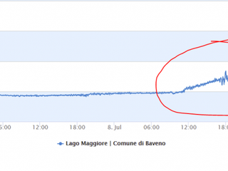 Il lago Maggiore segna 194.45 m s.l.m. mai così alto in questo 2021 ed è di circa 80 cm oltre il livello medio.