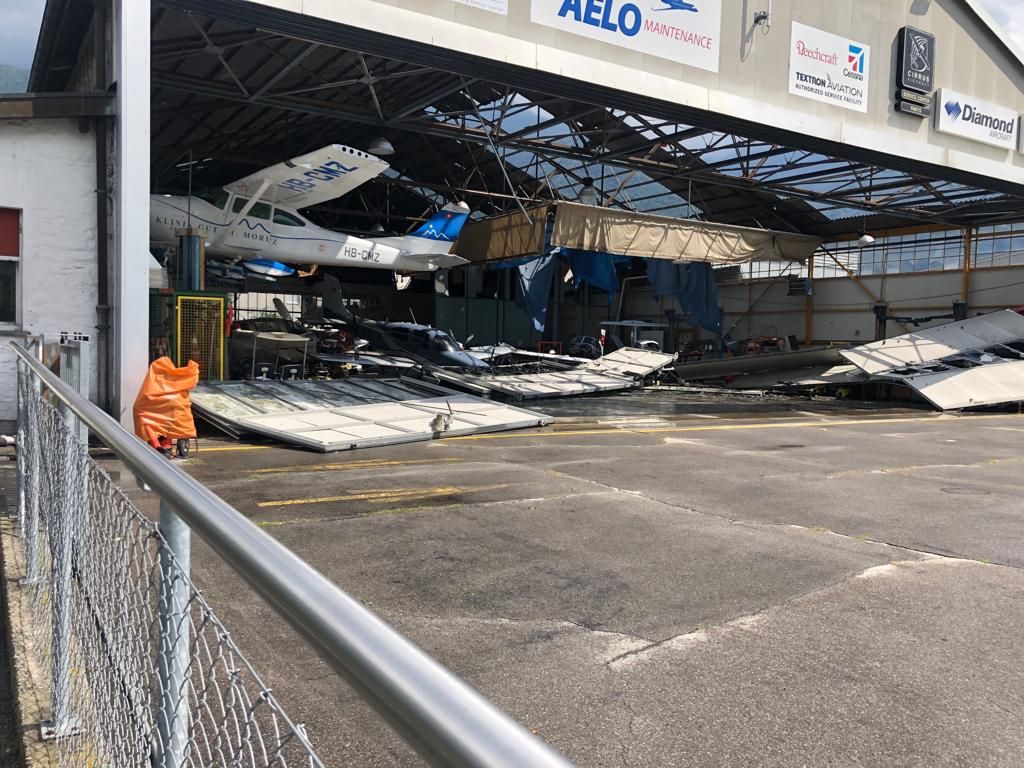 Una tromba d’aria ha colpito alle 9 di questa mattina l’aeroporto di Locarno Magadino. Un piccolo aereo monomotore, fermo sulla pista, è stato sollevato da terra e rovesciato dal vento che soffiava ad oltre 90 chilometri orari. Divelto anche il portellone dell’hangar 1 all’interno del quale c’erano gli operai addetti alla manutenzione dei velivoli.
