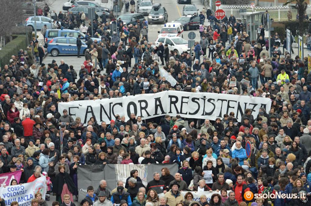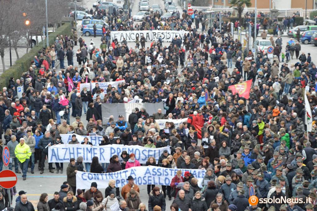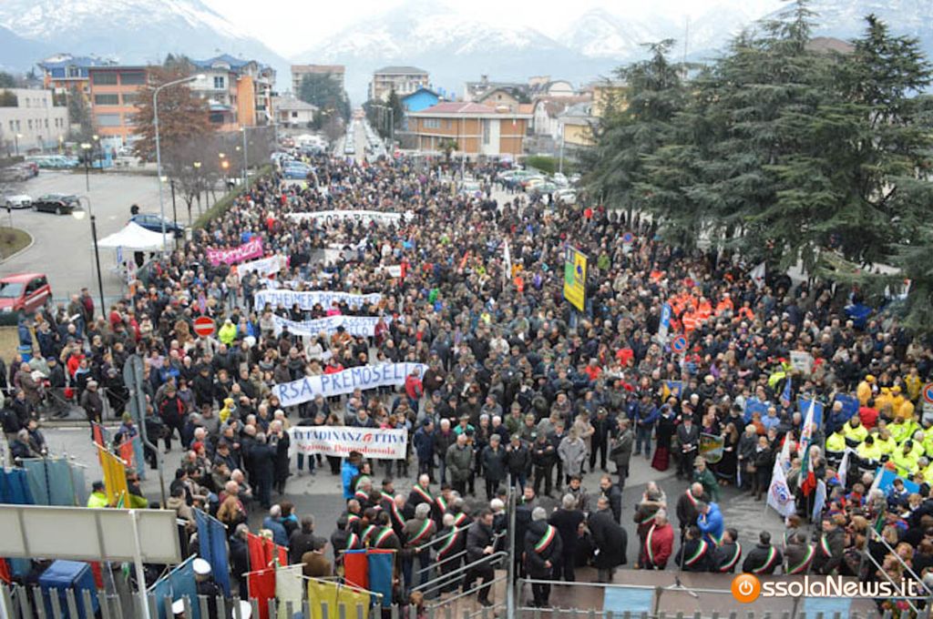 Era l'agosto 2002 e in Ossola più di 8 mila persone scesero in piazza a Domodososla per difendere l'ospedale che la Regione voleva ridimensionare. "Faremo nascere i nostri figli nella sala consiliare occupata" disserro le mamme occupando la sala storica. Era inizia la 'battaglia' in difesa dell'ospedale. In Regione governava in centrodestra: Enzo Ghigo presidente. Michele Marinello, allora presidente del consiglio domese, decise di restituire la bandiera dalla Regione che sventolava sul balcone del municipio.