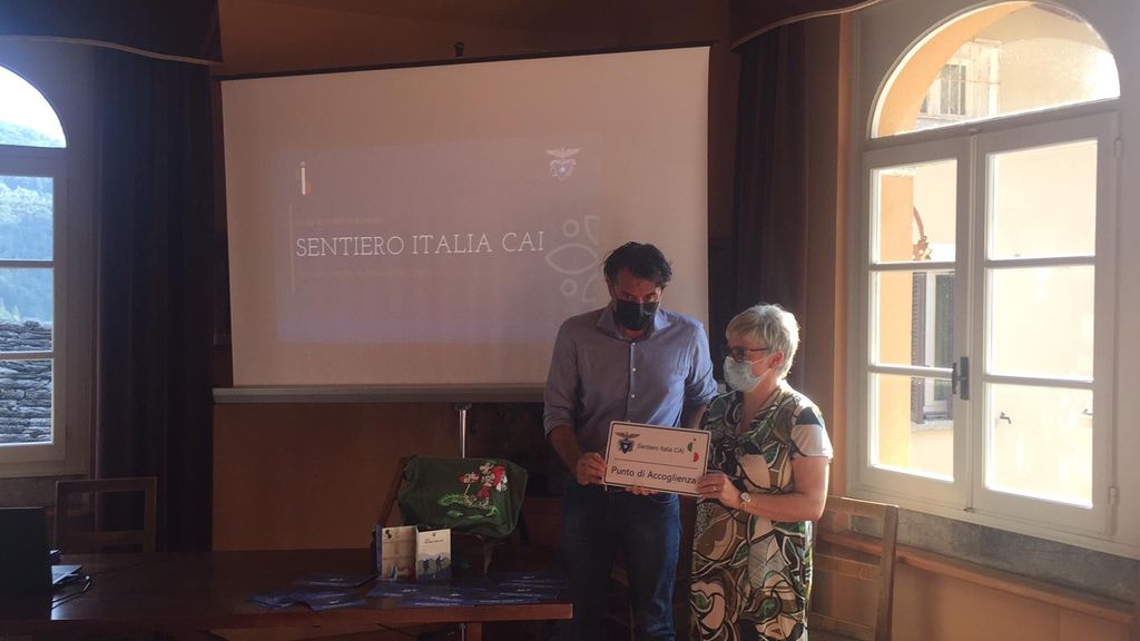 E’ stato il vice presidente generale del Club Alpino Italiano, Antonio Montani, ad accompagnare i presenti, grazie anche alla proiezione di slide e immagini, alla scoperta del Sentiero Italia Cai. La presentazione dell’iniziativa in Valle Vigezzo non è stato un caso: è infatti coincisa con la consegna della targa di punti di accoglienza alla locanda “Lo Scoiattolo”, di Villette e all’hotel Miramonti di Santa Maria Maggiore.