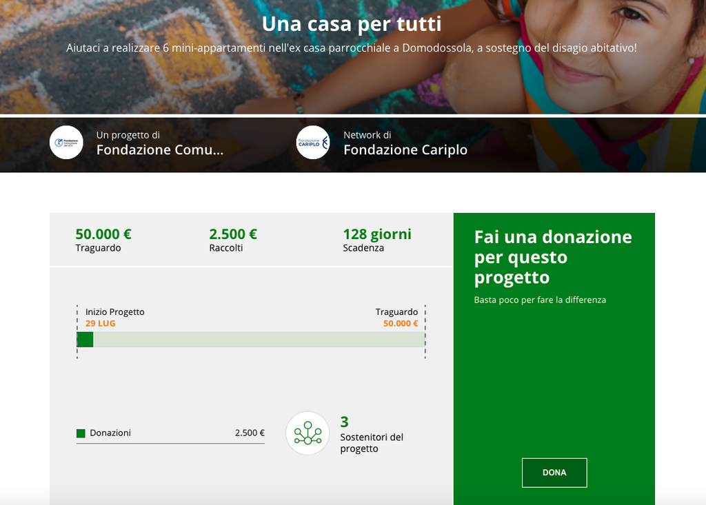 All'iniziativa ha aderito anche Fondazione Comunitaria del Vco con una raccolta fondi online (https://www.forfunding.intesasanpaolo.com/DonationPlatform-ISP/nav/progetto/id/5700) . Il costo dell’opera è di 800 mila euro circa, l’otto per mille della Chiesa Cattolica devolverà 250 mila euro e alcuni privati hanno offerto il loro contributo ma per completare l'opera serve l'aiuto di tutti. È possibile donare anche attraverso il conto corrente della Fondazione: Banca Intesa Sanpaolo IT 81 O 0306909606100000000570 . Banco Posta IT 79 L 07601 10100 001007819913. C/C postale 1007819913 causale “Una casa per tutti”. Oppure è possibile versare il proprio contributo direttamente all'ufficio parrocchiale.