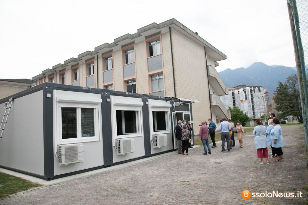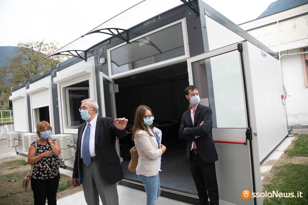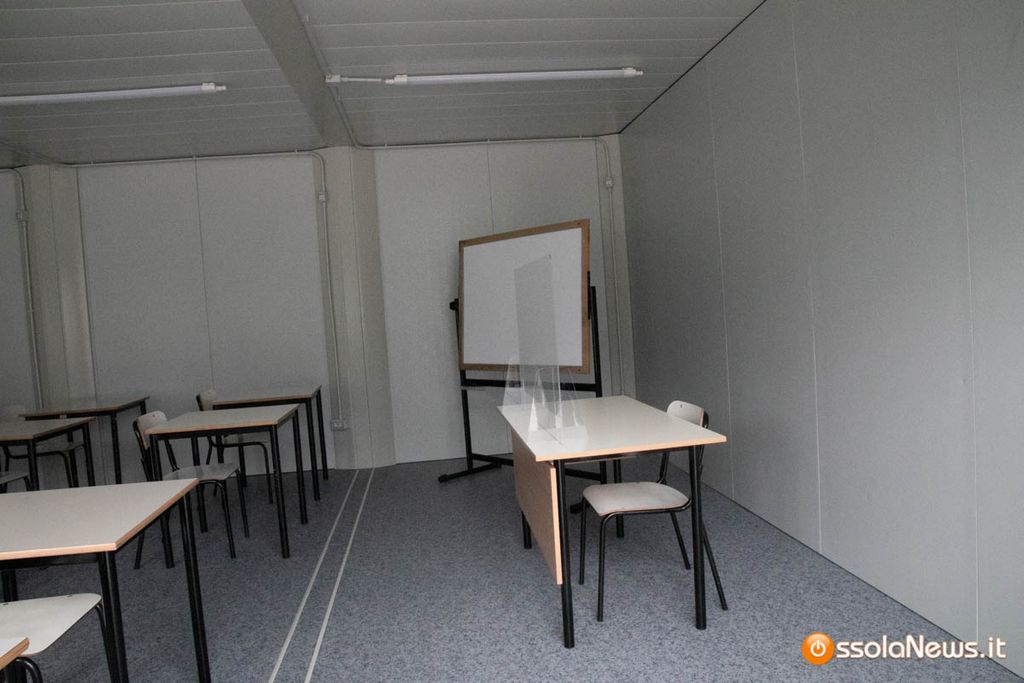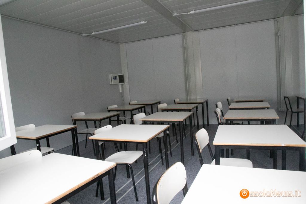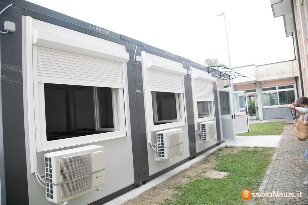 Le aule, che possono ospitare 25 studenti ciascuna, sono sistemate nell'area esterna del liceo di Domodossola e sono state aperte in anteprima per una visita ai giornalisti, alla presenza del dirigente scolastico Ragozza e dei rappresentanti della Provincia.