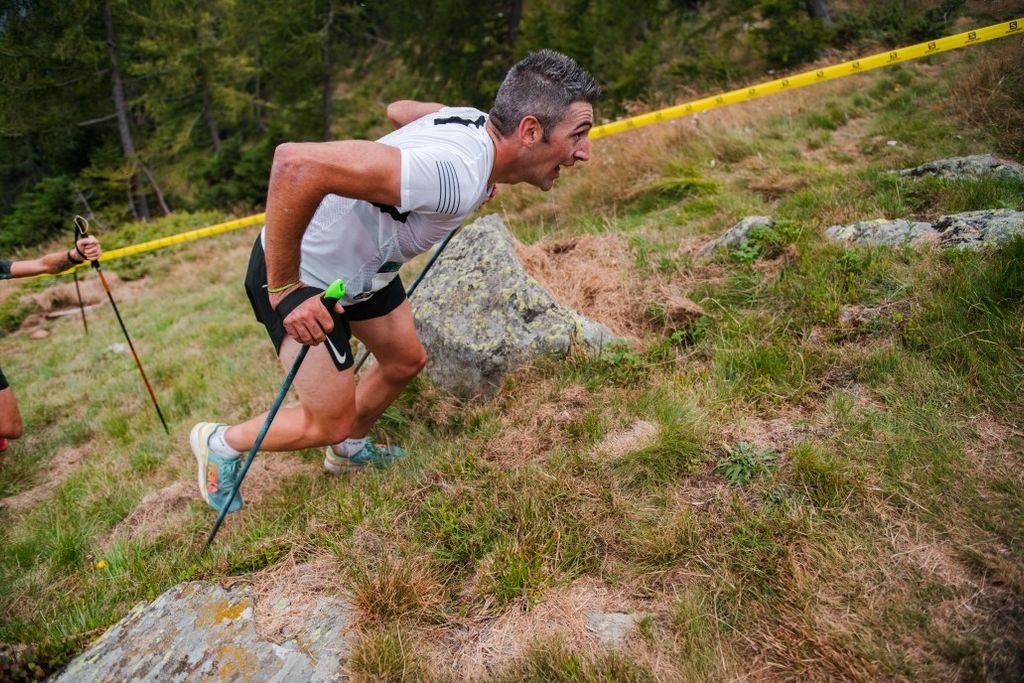 Stringe i denti e passa in testa al Rifugio Gattascosa posizionato al termine della prima discesa, la più tecnica della gara.