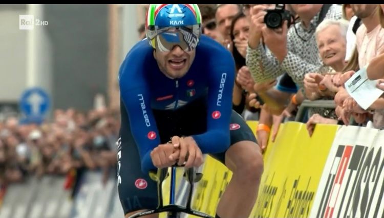 Filippo Ganna si riconferma Campione del mondo a cronometro. Pippo ha difeso la maglia iridata conquistata lo scorso anno ad Imola battendo il campione di casa belga Wout Van Aert. Filippo Ganna riscatta la gara dell'Europeo corsa in Trentino nei giorni scorsi che aveva chiuso al secondo posto dietro allo svizzero Stefan Küng.