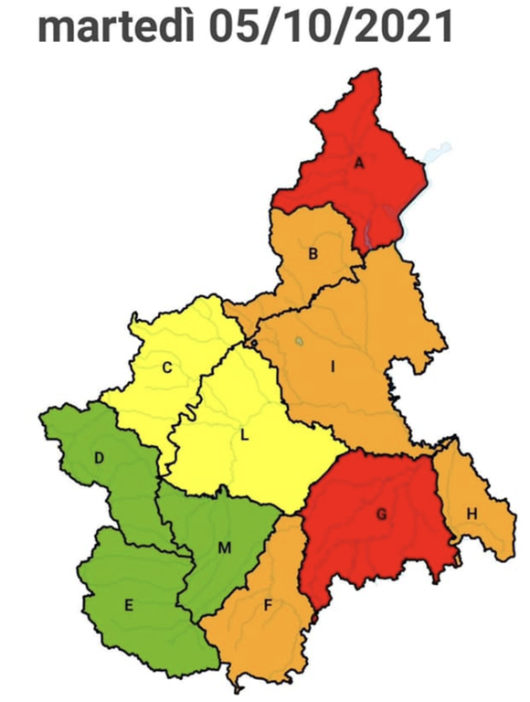L’ultimo bollettino emesso da Arpa Piemonte per il nostro territorio alza dal 5 ottobre la soglia di rischio da Arancione a Rosso.