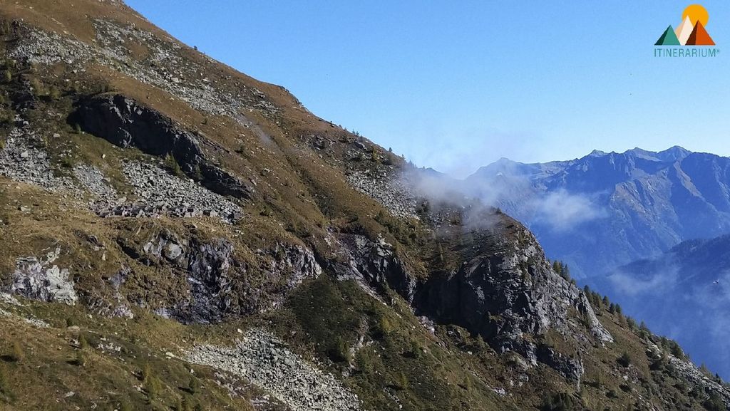 L’itinerario prosegue risalendo il versante del monte Marigal fino all'antico alpeggio Colla e prosegue poi lungo il sentiero che si snoda a mezza costa fino a raggiungere l'alpe Cortenero. Questo antico alpeggio deriva il suo nome dal colore scuro della pietra locale, la stessa pietra utilizzata per costruire le case che si mimetizzano con il contesto.