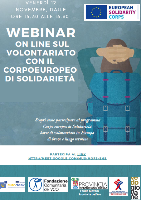 Incontro del progetto “YOU in the EU” promosso in rete da Eurodesk Provincia VCO, Fondazione Comunitaria del VCO, Agenzia Piemonte Lavoro, Fondo Giovani della Provincia del VCO, coop. Vedogiovane.