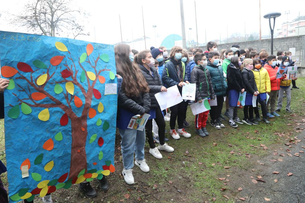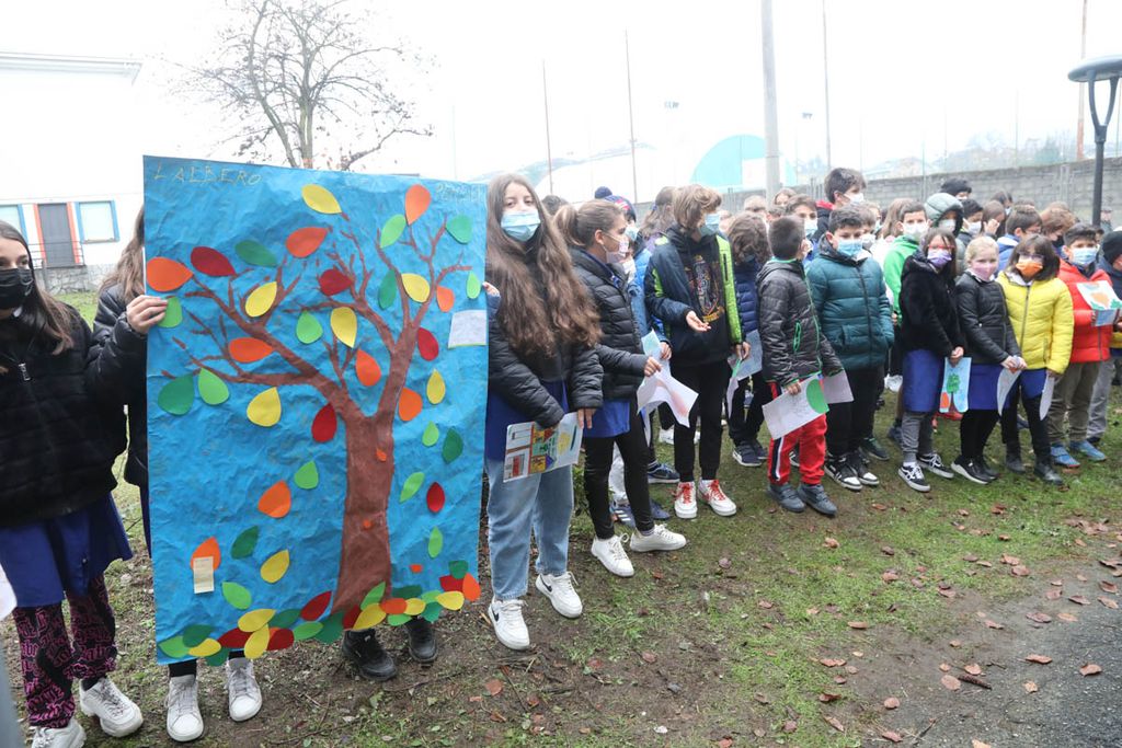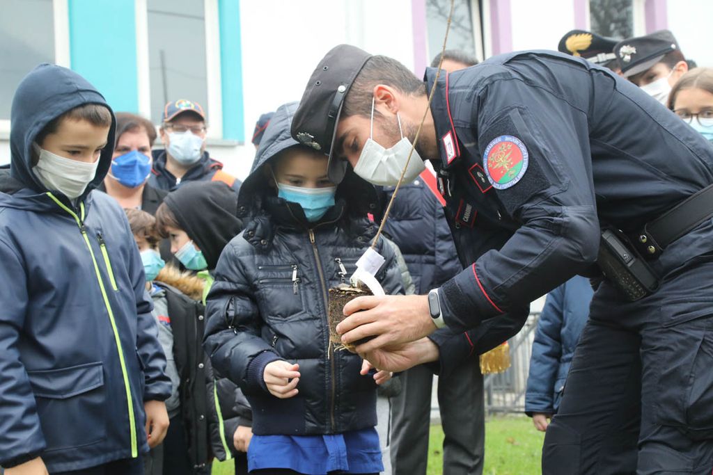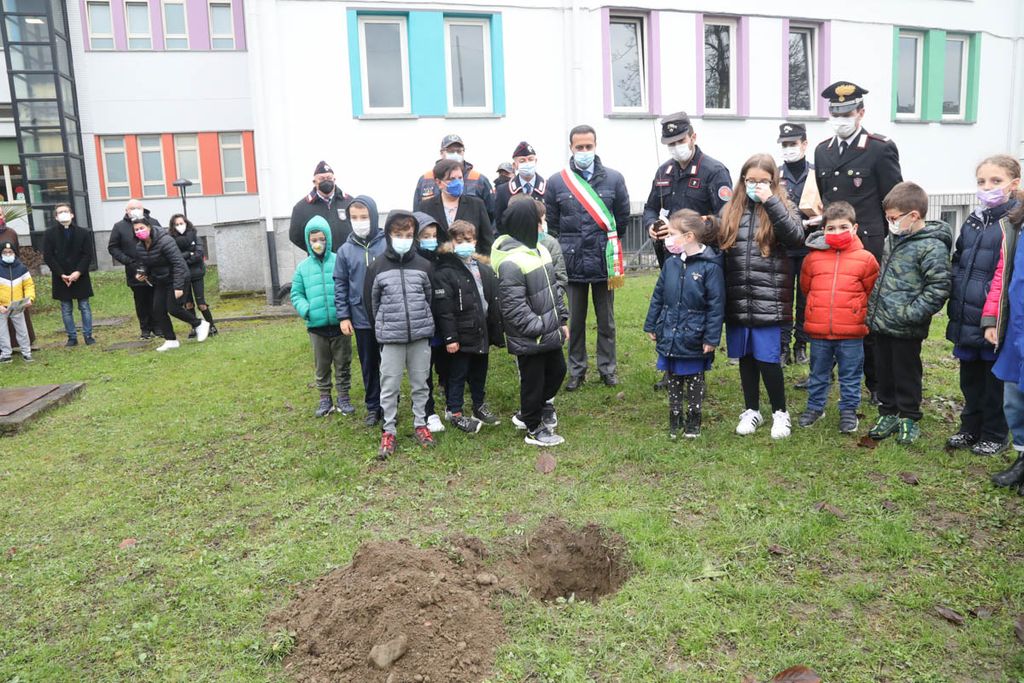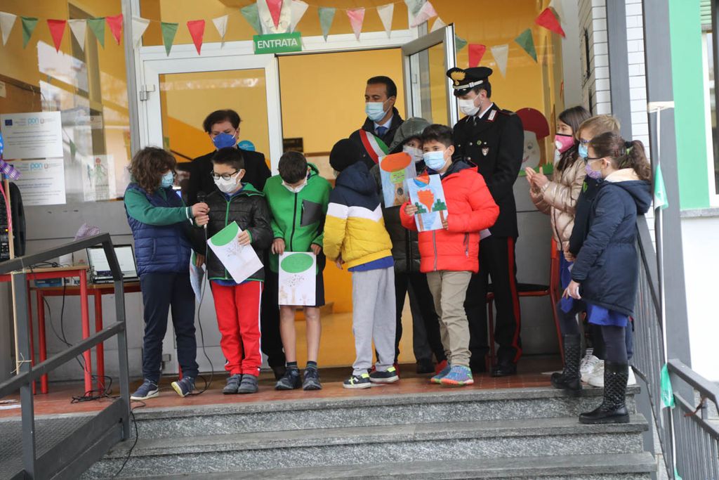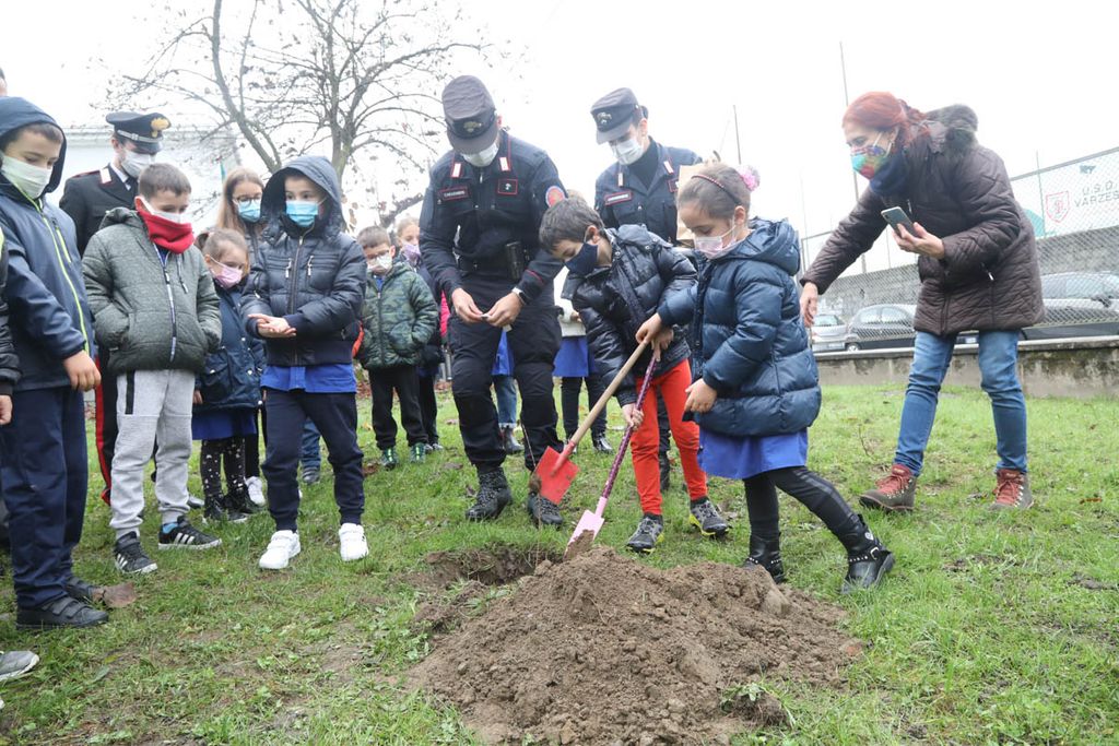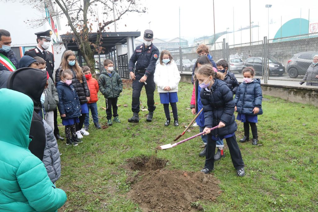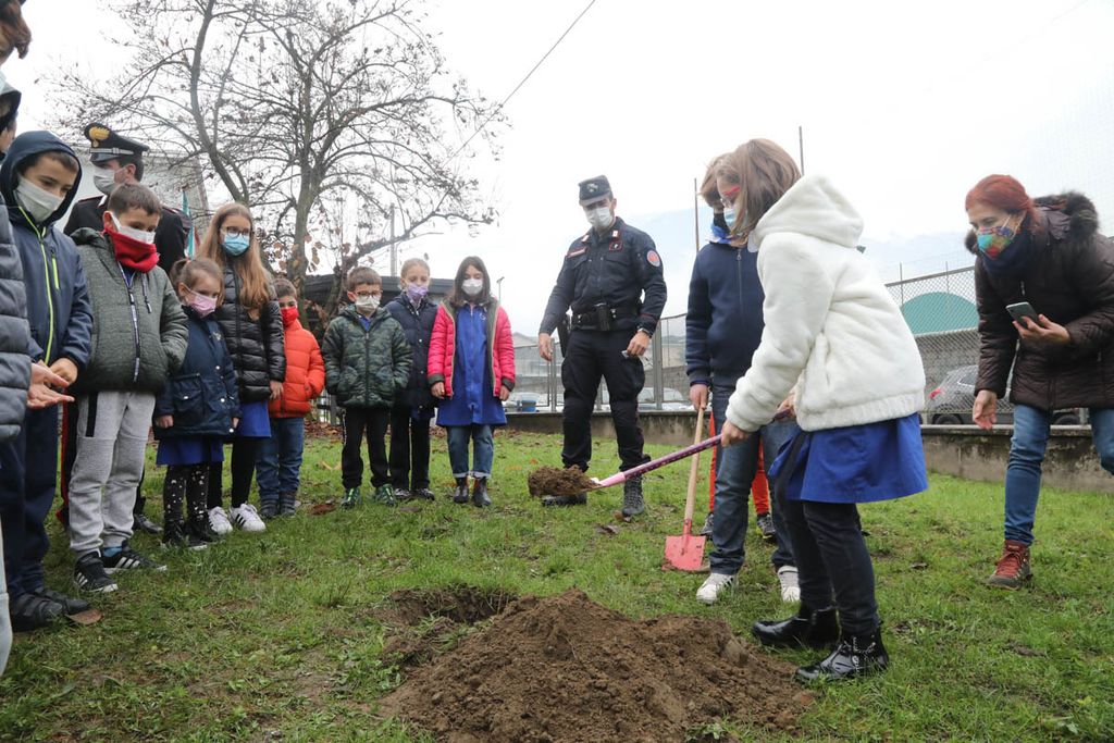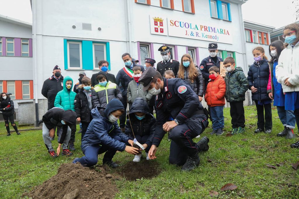 Dopo gli interventi, una rappresentanza di bambini ha piantato con il sindaco e i Carabinieri la talea. La mattinata è proseguita poi con la piantumazione di cinque azalee messe a dimora da tutte le classi delle Kennedy nel giardino della scuola.