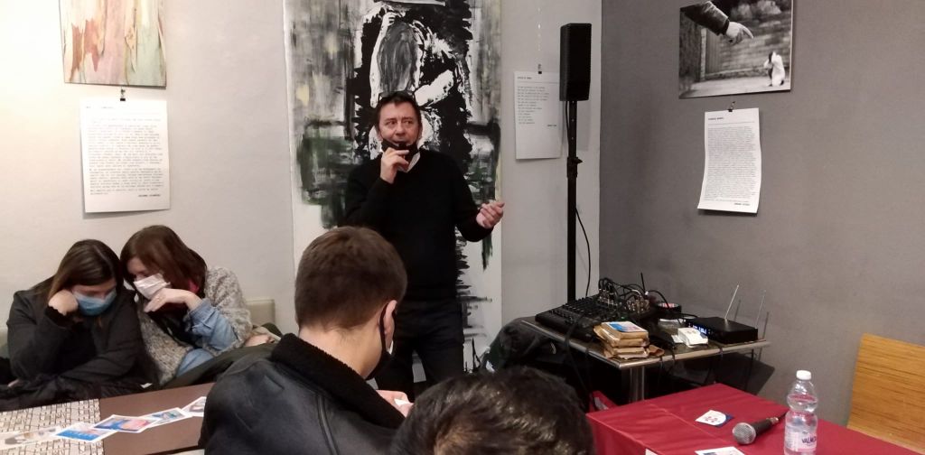 Sotto ad ogni opera artistica un breve racconto sulla tematica della violenza, scritti da Arianna Giannini, promotrice dell’evento, Stefano Paiuzza, Monica Fradelizio e Matteo Giomi. Hanno presenziato anche la giornalista e docente Francesca Zani in veste di moderatrice, Marianna Rampini preside dell’ Enaip i cui studenti sono stati protagonisti di un progetto presentato giovedì pomeriggio, Danilo De Regibus docente Enaip che ha seguito i ragazzi in questo percorso e Cristina Brasi, psicologa, criminologa e analista scientifica del linguaggio non verbale, nonché presidente di FBA-LAB.