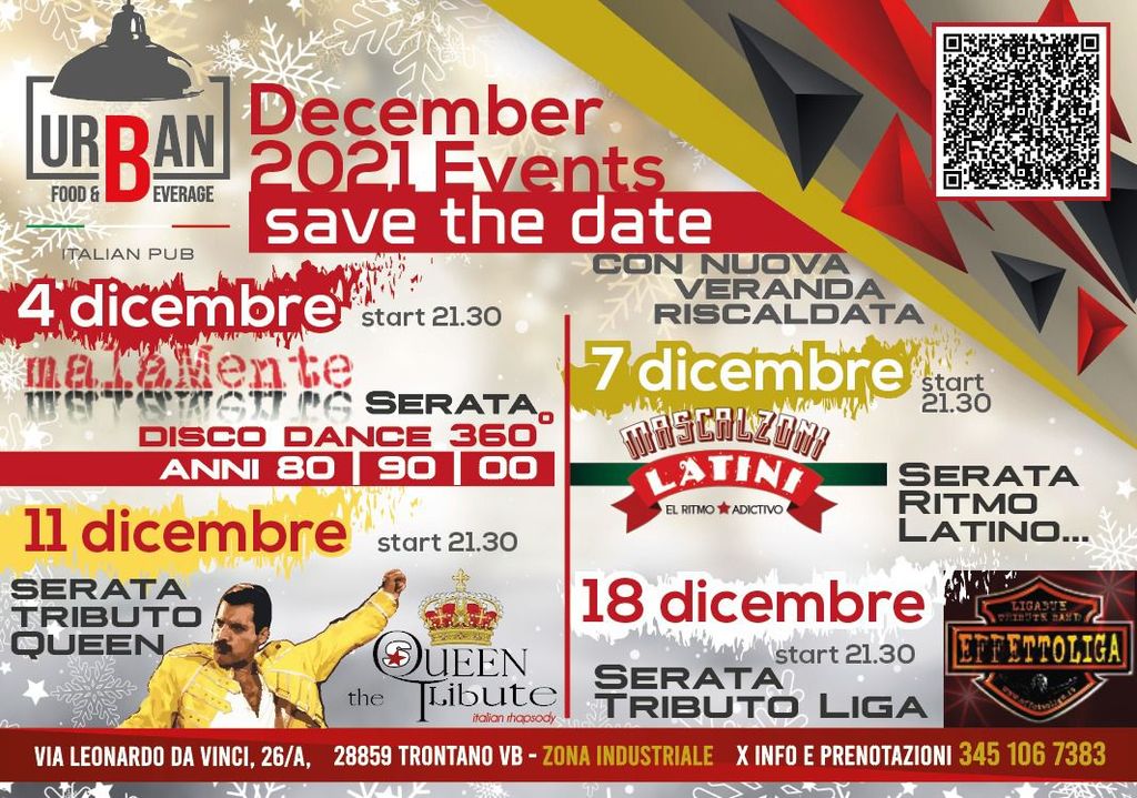 Proseguono le serate all’Urban Food&Beverage di via Leonardo da Vinci a Trontano, il 4 dicembre dalle 21.30 ad esibirsi all’italian pub ci saranno i ‘malaMente...’ un progetto musicale il cui unico scopo è divertire e divertirsi, facendo rivivere al pubblico le atmosfere dance dagli anni '70 ad oggi.