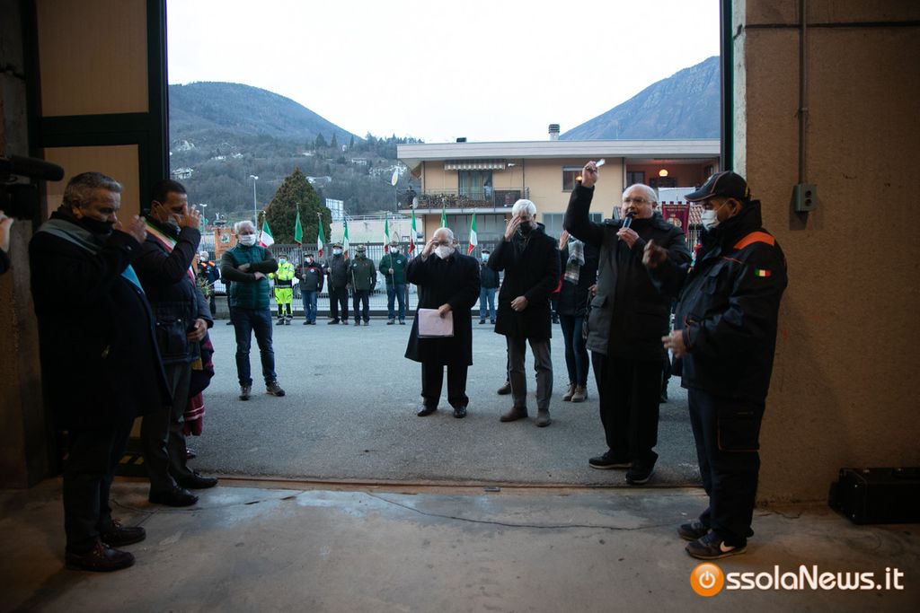 Al taglio del nastro oltre ai tantissimi rappresentanti dei volontari, anche il primo cittadino Lucio Pizzi, il presidente della Provincia Rino PoriniIvano Caffaro, capo squadra A.I.B. Di Domo, l'ispettore provinciale A.I.B. Raul Bassi, Giovanni Grossi, presidente della sezione ANA domese, Matteo Gasparini, del Soccorso alpino Valdossola.