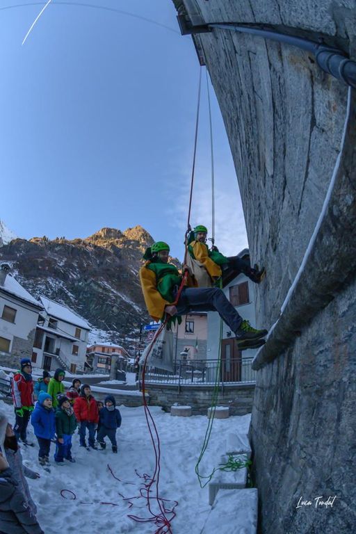 Babbo Natale scende dal campanile. E’ l'iniziativa fatta dal Soccorso Alpino ad Antrona Schieranco che ha aderito all’invito del gruppo folk del paese.