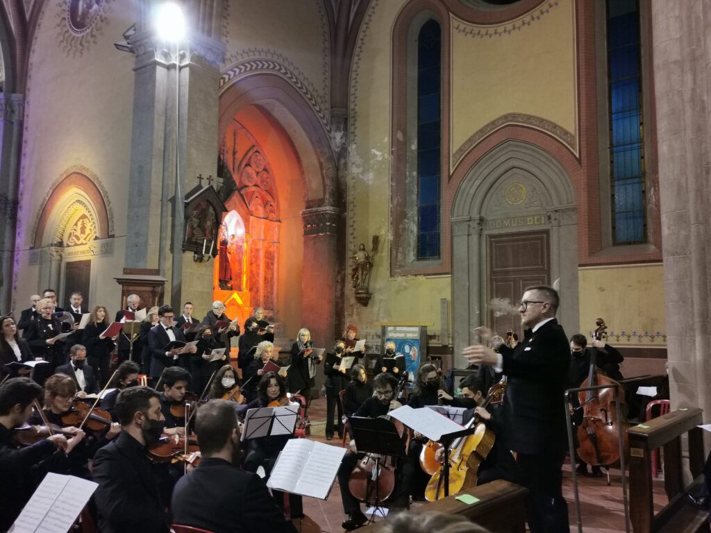 Infatti erano presenti i padroni di casa del Coro Lirico Viotti di Vercelli, diretto da Stefania Bellini, la Corale Sant’Abbondio di Buronzo con Lorenzo Battagion e l’Orchestra da camera della Cappella Musicale del Sacro Monte Calvario, diretta Anselmo Quartagno.