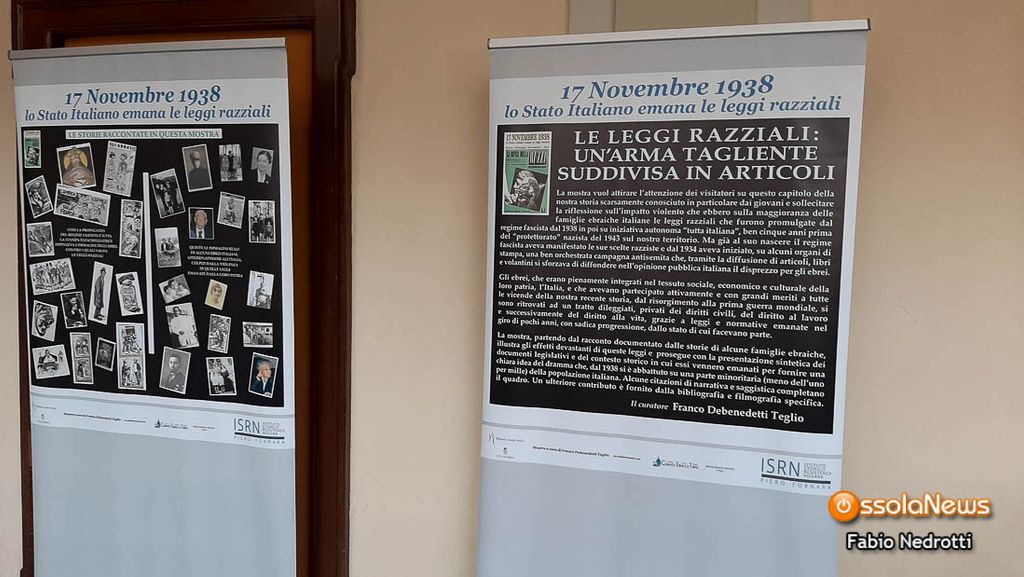 Il titolo della mostra è ‘17 novembre 1938: lo stato italiano emana le leggi razziali’ ,curata da Franco Debenedetti Teglio che da bambino sopravvisse alle deportazioni rimanendo nascosto. A fare gli onori di casa il padre rosminiano don Fausto Gobber e il sindaco di Domodossola Lucio Pizzi.