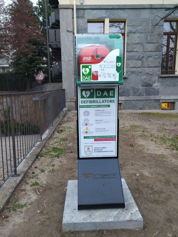 Inaugurato la sera del 16 marzo il defibrillatore nell'area esterna alla sede del Civico Corpo Musicale di Domodossola, in via Rosmini. Si tratta di uno strumento donato dal Civico corpo musicale, costato 2600 euro, che sarà a disposizione non solo dei componenti della banda ma anche, vista la posizione strategica, della popolazione.