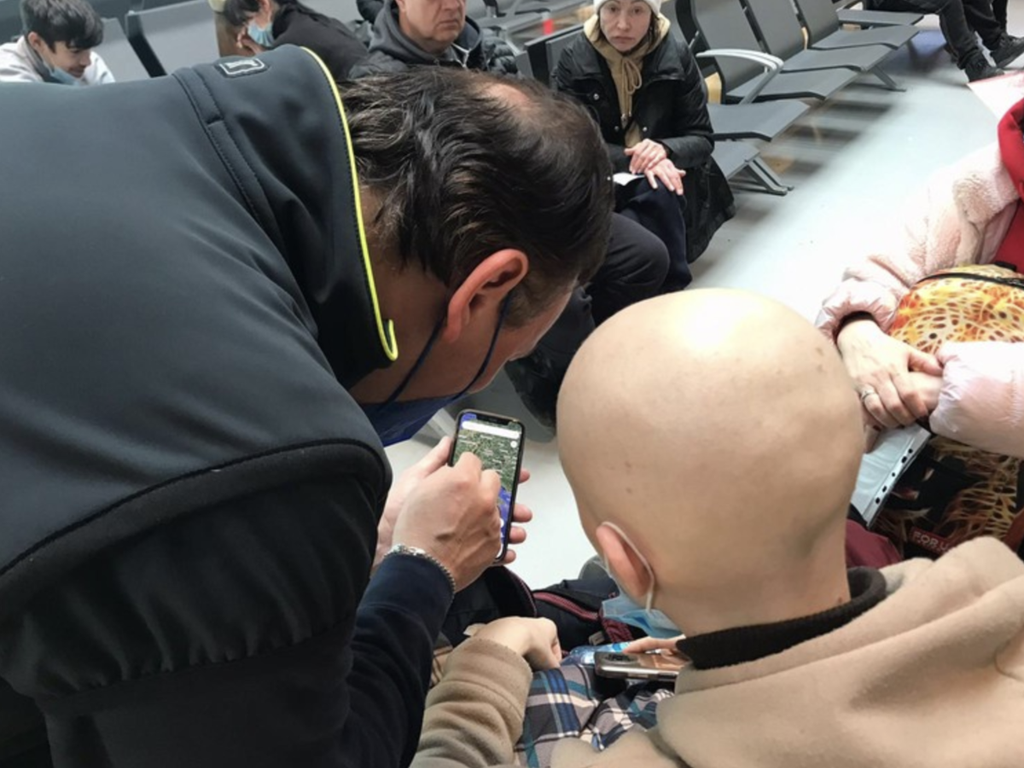 Una valigia, una borsa e gli occhi azzurri che si illuminano. L’aeroporto di Iasi, in Romania, è solo la tappa di un lunghissimo viaggio partito dall’Ucraina e che in poche ore porterà i bimbi malati e le loro mamme la Regina Margherita di Torino.