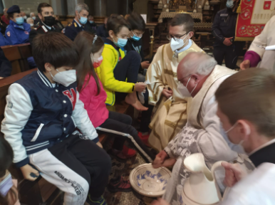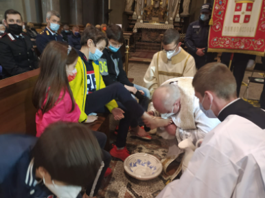 Nella messa della Cena del Signore con la Lavanda dei piedi il parroco ha lavato i piedi a dodici ragazzi e ragazze del catechismo. “Sono coloro – ha detto il parroco -che durante il Covid hanno sofferto di più”.