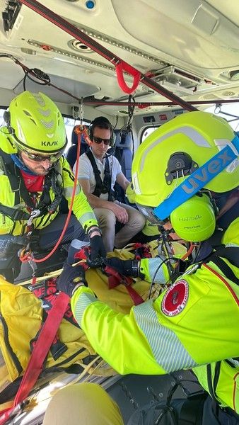 Nel corso della visita, gli ospiti greci hanno potuto partecipare attivamente alle esercitazioni del personale sanitario e del Soccorso Alpino prendono parte in prima persona all’evento formativo che prevedeva manovre speciali con elicottero.