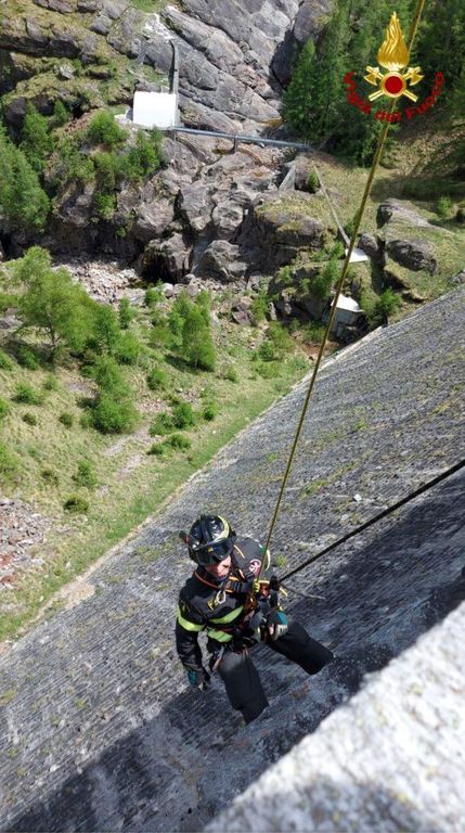 Al termine della manovra, si è potuto testare l’attrezzatura a disposizione a bordo di uno degli ultimi automezzi assegnati al comando di Verbania, specifico per l’impiego in ambiente montano ed impervio, che ha permesso di effettuare delle calate sulla verticale del muro di sbarramento, così come previsto dal programma di mantenimento per il personale appartenente al nucleo SAF Speleo – Alpino - Fluviale del Comando.