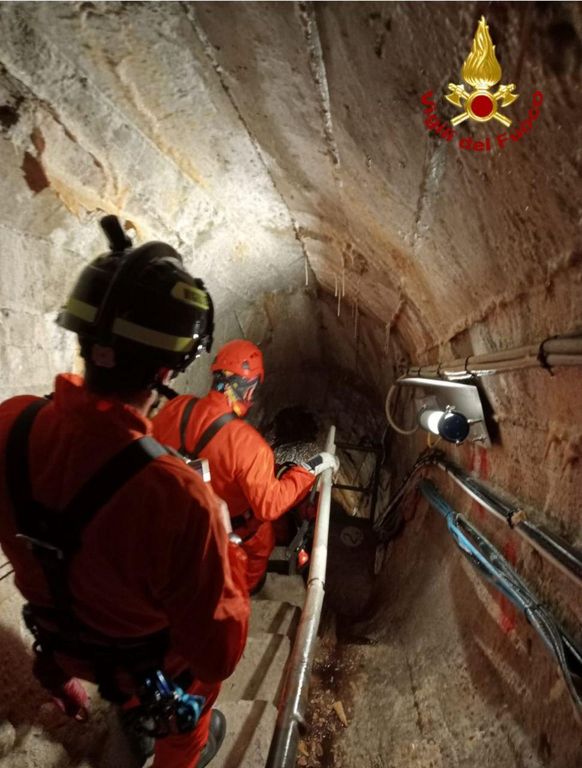 I soccorritori hanno simulato il recupero di un lavoratore infortunatosi all’interno del cunicolo di accesso al muro di coronamento del bacino artificiale, che si sviluppa in maniera verticale per un'altezza di circa sessanta metri.