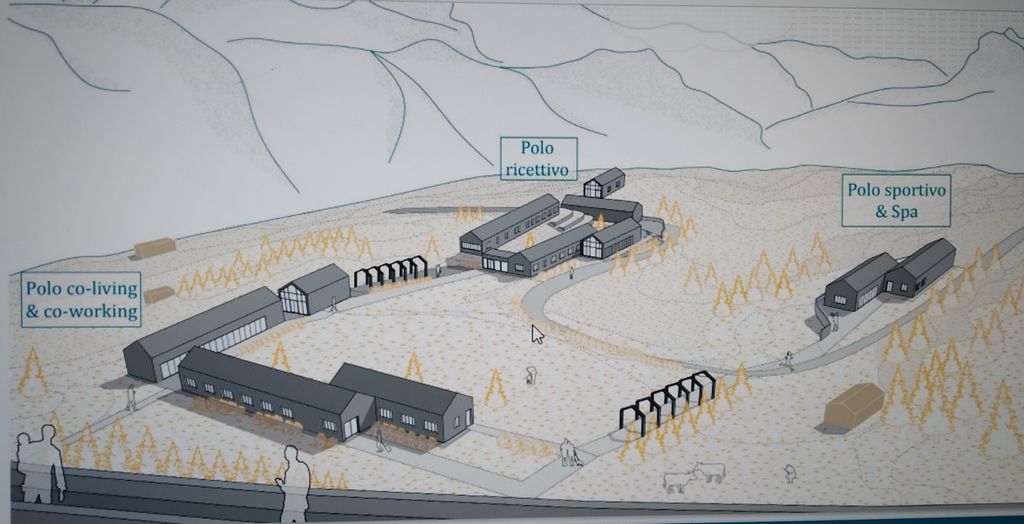 Si tratterebbe di ricavare una quarantina di posti letto, cucine, aree gioco per bambini, spazi per il cowoking, palestra, centro benessere, aree per noleggio attrezzatura sportiva. Un villaggio vivibile a 1815 metri di altitudine.