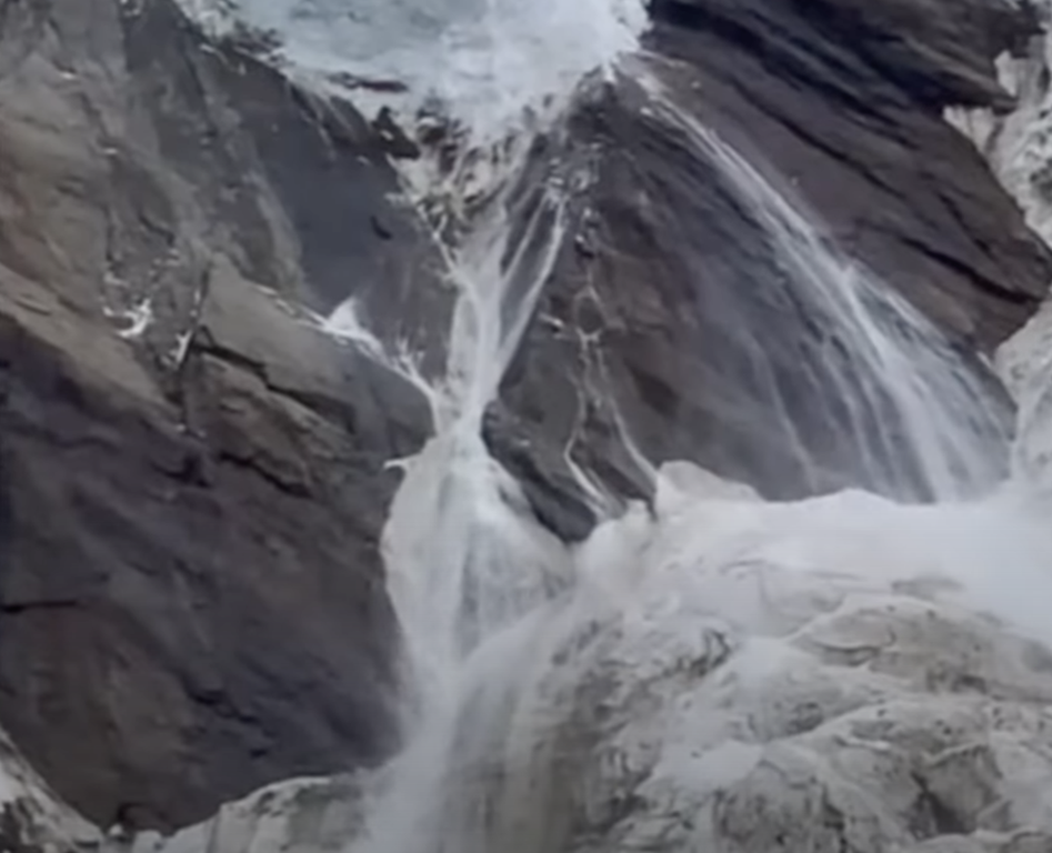 Spettacolare crollo di ghiaccio sul ghiacciaio del Trift (Saas Tal)