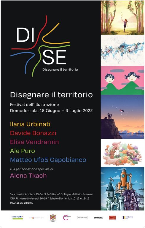 Sei illustratori in arrivo. Sei creativi che presentano, in un’edizione che si riconferma unica nel suo genere, la propria personale visione sul mondo. Ale Puro, Alena Tkach, Davide Bonazzi, Elisa Vendramin, Ilaria Urbinati, Matteo Ufo5 Capobianco sono i sei artisti che animeranno la seconda edizione del Festival dell’illustrazione Di-Se a Domodossola, quest’anno dedicata al tema Passare le Alpi.