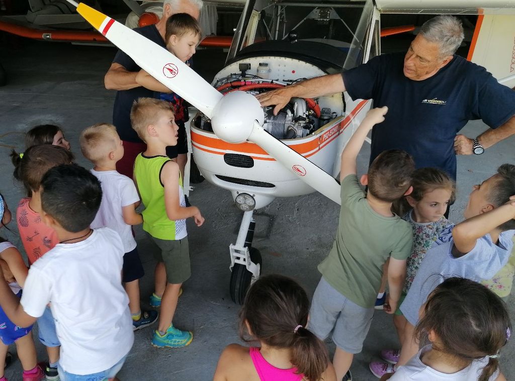 I bambini sono arrivati in mattinata dopo una passeggiata sulla via Campeccio, con visita ai numerosi allevamenti di cavalli. Lungo il percorso hanno anche fatto visita alla Giana Helicopter che ha permesso loro di vedere da vicino il loro parco mezzi. All’aviosuperficie, gli alunni sono stati accolti dal presidente Pier Giovanni Bracali, che è rimasto con i bambini per tutta la giornata, mostrando loro gli hangar e i velivoli ivi custoditi, ha ampiamente spiegato agli alunni caratteristiche e dettagli degli ultraleggeri e anche degli aeromodelli custoditi nella struttura. Con lui il Carlo Cerutti, esperto in particolare del volo in aliante.