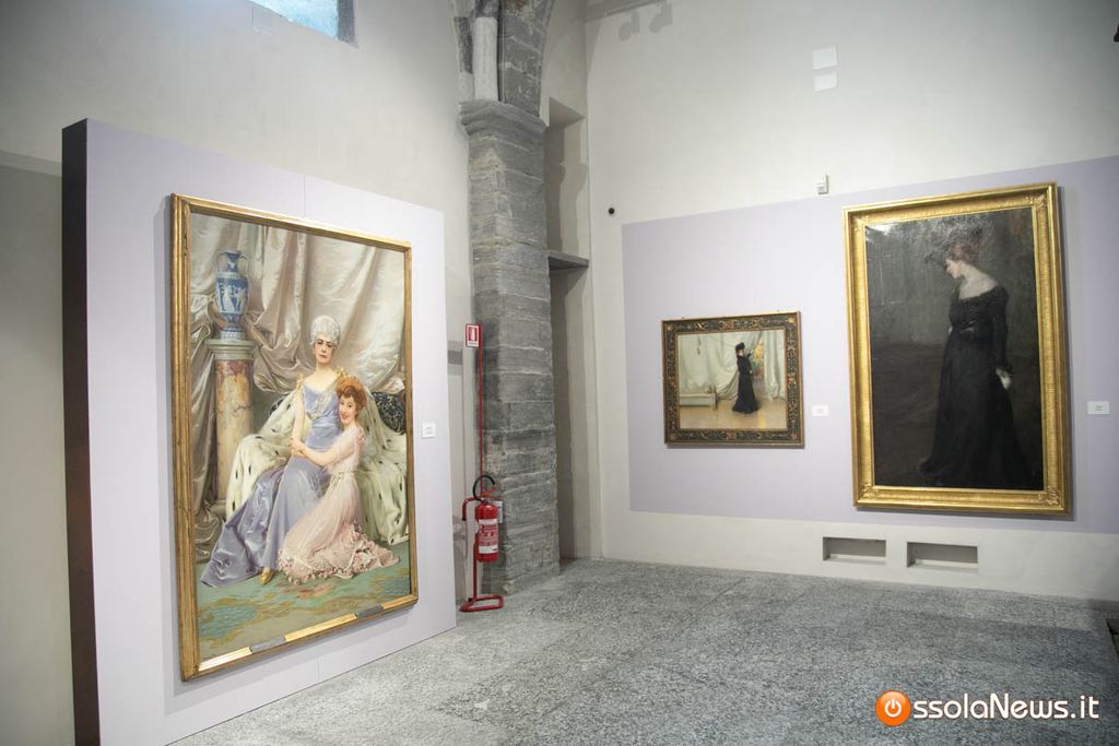 In mostra oltre ai quadri di artisti famosi anche il sontuoso mantello a strascico indossato dalla Regina Margherita, esposto in un allestimento che pone il manto in dialogo con il ritratto della regnante, accessori dell’epoca e fotografie. Esposti quadri con soggetto la donna, dipinti da Zandomeneghi, Mario Cavaglieri, Giovanni Fattori, Silvestro Lega, Vittorio Amedeo Corcos, Giacomo Grosso, Cesare Maggi, Carrà, Pellizza da Volpedo, fino a Sironi, Modigliani e Picasso.