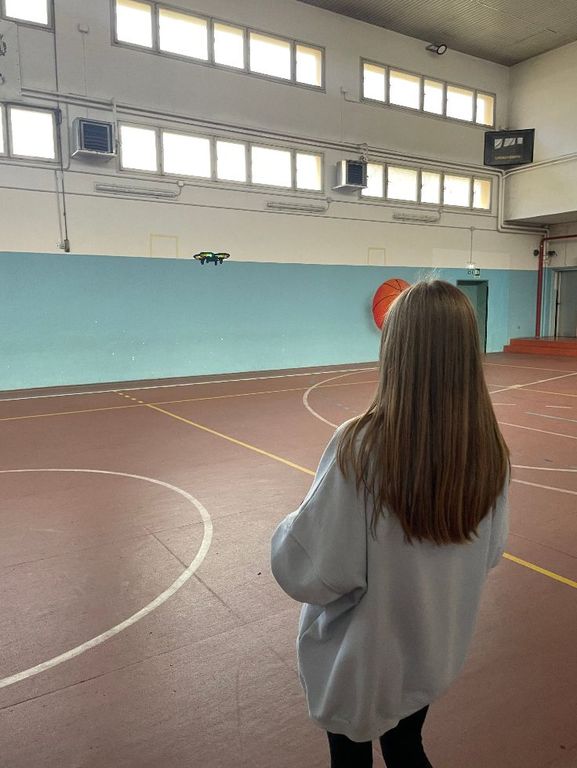 “Questa attività è stata molto carina ed alternativa a quella che può essere una semplice attività scolastica. Non avendo mai “guidato” un drone, sono riuscita ad imparare, a capire anche varie condizioni di spazio. Ho fatto alcuni “percorsi”, sono anche riuscita a migliorarmi rispetto al primo incontro e a tenere un pochino la mano più ferma [sul radio comando]”.