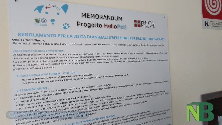 A entrare nel dettaglio di "HelloPet!" è Stefano Di Massimo. Ci sono regole alle quali sottostare molto rigide, che sono contenute in un "memorandum" esposto nell'area dedicata al progetto. "Possono entrare per esempio solo animali d'affezione con libretto sanitario aggiornato e certificato medico veterinario di buona salute -spiega Di Massimo- . I percorsi di accesso sono 2 o dalle scale internamente ma da valutare caso per caso. Vanno accompagnati con trasportino o guinzaglio e possono essere anche più di uno alla volta. L'autorizzazione deve essere rilasciata tramite procedure predisposte dall'AslBi a tutela dell'ambiente ospedalieri. In particolare il progetto è rivolto ad adulti ricoverati per un periodo superiore a 15 giorni, pazienti pediatrici anche per un periodo inferiore o ai pazienti in fine vita in base alle loro condizioni cliniche. Sono coinvolti tutti i reparti eccetto rianimazione, pronto soccorso, week surgery e i reparti Covid".
