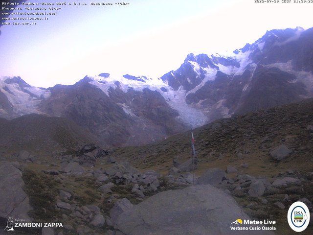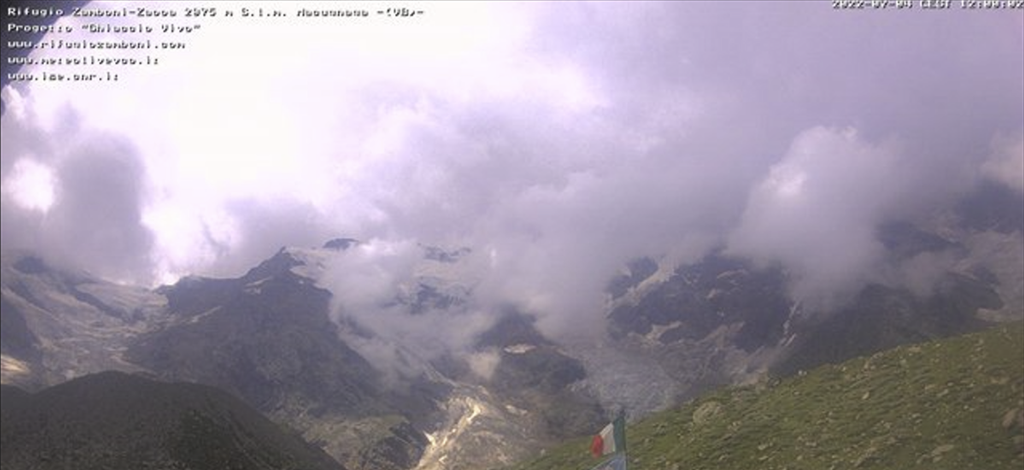 Sergio, responsabile del Progetto Ghiaccio Vivo, spiega che è possibile paragonare tramite immagini da postazione fissa l’evoluzione del ghiacciaio degli ultimi 7 anni, grazie alla partecipazione del Rifugio Zamboni al progetto di monitoraggio. Nel periodo estivo la frequenza delle immagini salvate aumenta.